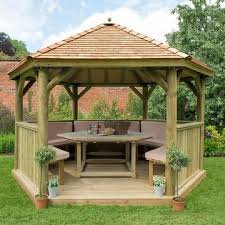 A Wooden Garden Pavilion adds a beautiful and natural touch to any outdoor space, enhancing its overall elegance.